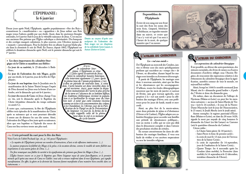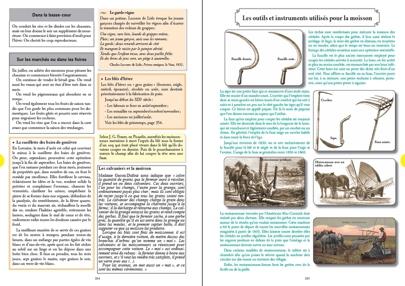 Parce que l’Almanach était bien souvent le seul livre que possédaient nos ancêtres ruraux, cet ouvrage est conçu comme un Almanach, avec ses calendriers solaire et lunaire, ses invocations religieuses, sa kyrielle de saints protecteurs, ses pèlerinages, ses conseils agricoles, ses foires et ses dictons de sagesse populaire... mais il est bien plus qu’un Almanach ! Il est surtout un livre d’Histoire qui se veut le témoignage d’un passé oublié... Celui d’une France rurale perdue, avec son rythme régulier de festivités et de travaux agricoles saisonniers, ses gestes du quotidien, ses traditions, ses croyances, ses superstitions, ses usages anciens et ses vieilles pratiques ancestrales.