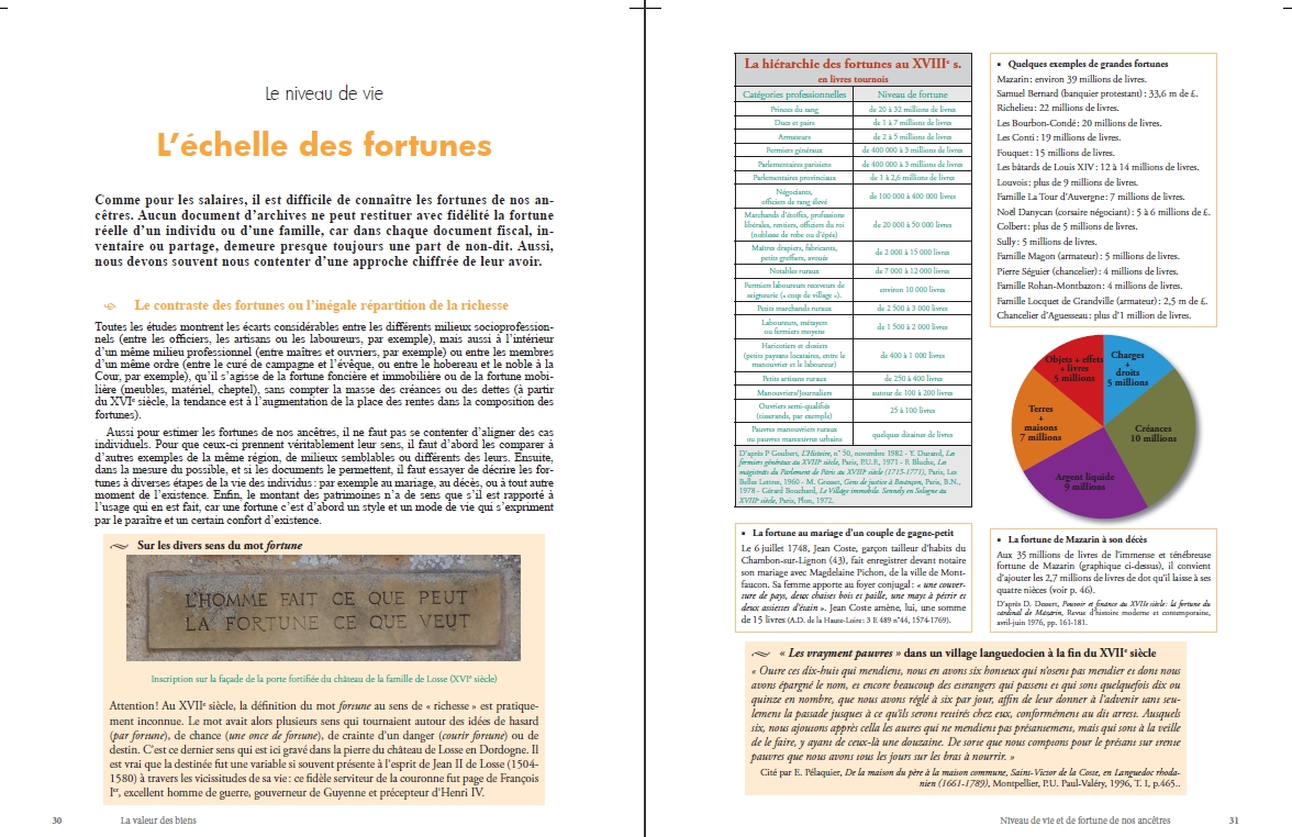 La valeur des biens, niveau de vie et de fortune de nos ancêtres