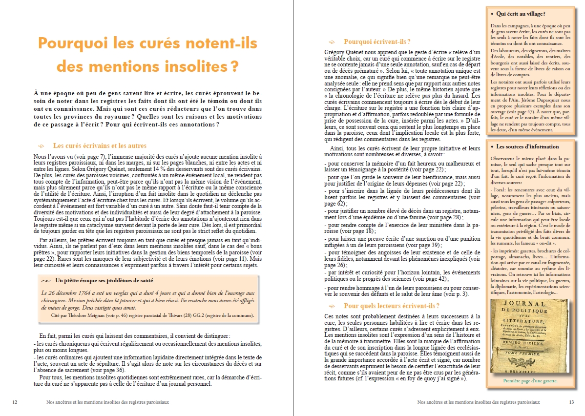 Réf.: 01Pourquoi certains curés notent-ils des mentions insolites ? Que nous apprennent-elles sur la vie quotidienne de nos ancêtres ? Comment les utiliser pour compléter notre généalogie et l'histoire de notre famille ? Une étude inédite...